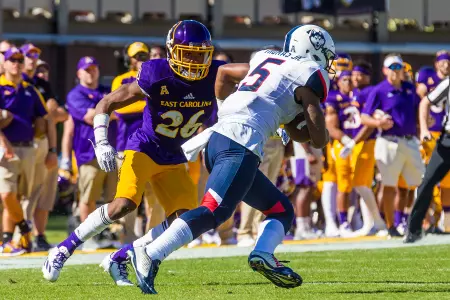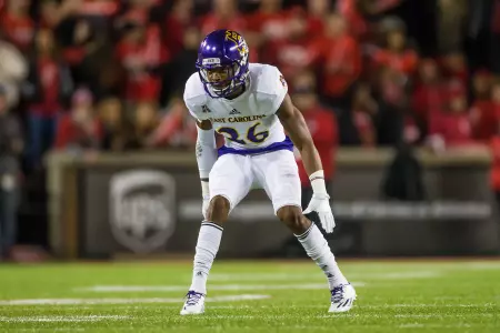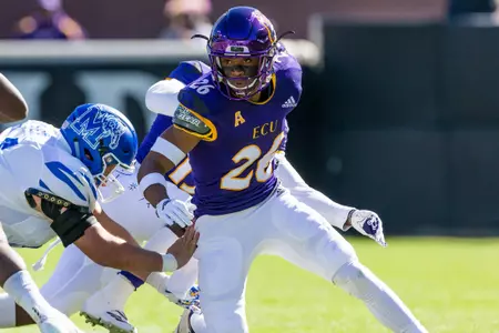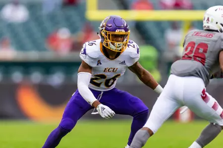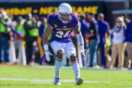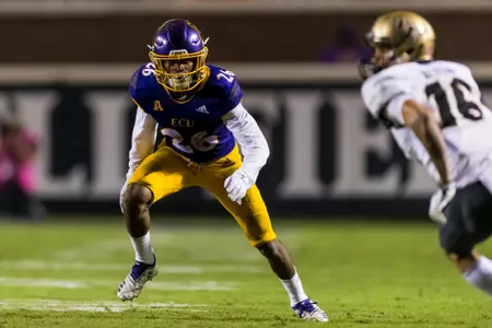 A durable and battle-tested pass defender who will enter senior season as a viable conference honors candidate ⦠A Preseason All-American Athletic Conference (fourth-team) selection by Phil Steeleās College Football Preview Magazine ⦠Was thrown into the proverbial fire early as a true freshman and has 33 games (29 starts), 119 total tackles, three interceptions and 13 pass breakups on his collegiate resume ... Faced early spring challenges with terminology and schematic adjustments implemented by the new coaching staff, but finished practice period with a solid grasp on the secondary two-deep at the strong cornerback position (alongside a pair of true freshmen) ⦠Could again fill special teams return roles based on his defensive responsibilities and number of game-day repetitions ⦠Booked two tackles during the first spring scrimmage on March 30 ⦠Was not credited with any statistics in the second clash, but had a pair of stops and a pass breakup in the Purple-Gold Game (April 13) ⦠Officially enrolled early at ECU in January of 2016 ⦠Re-signed (grant-in-aid) with ECU after initially inking a national letter-of-intent with the Pirates in February, 2015.
