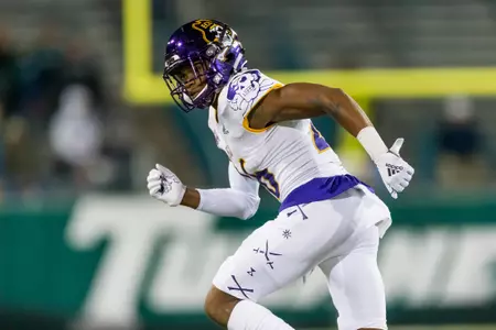 2018: Played in (and started) 11 games ⦠Did not experience action at USF in the American Athletic Conference opener ⦠Finished among the Piratesā top 10 tacklers with 39 stops (28 solo) ⦠Also credited with a half TFL (Connecticut) and four pass breakups (two vs. North Carolina, one each vs. Houston & Memphis) ⦠From a takeaway standpoint, picked off a pass against the Huskies (no return) and forced a fumble vs. the Tar Heels ⦠Booked at least one tackle in 10 outings (0 vs. Cincinnati) and had multiple hits nine times, which included a season-high 10 (7 solo) at NC State inside Carter-Finley Stadium to close out the year ⦠Other noteworthy tackle performances came against Connecticut (5), Temple (4), Houston (4), Memphis (4), North Carolina (3), UCF (3), Tulane (3) and Old Dominion (2) ⦠Co-led special teams unit with five stops ā three on kickoff returns, two on punt returns ⦠Defensively, recorded 21 tackles on pass plays (13 on rushes) ⦠Booked 23 hits during seven AAC tilts (3.3 tpg) ⦠Averaged 4.2 tackles per game (25) in second half of campaign (final six contests) after netting 2.8 per outing in the first half ⦠Considered a key part of a unit which ranked third nationally in TFLs (8.8 tpg), 22nd in sacks (2.8 spg) and 35th in fewest first downs allowed (243) ⦠Opened season in a return role, handling a pair of punts (16 yards) vs. N.C. A&T before fielding two kickoffs (30) a week later vs. North Carolina ⦠Selected as both the defensive and special teams MVP following spring workouts.