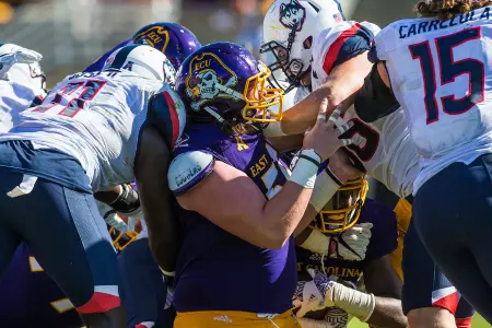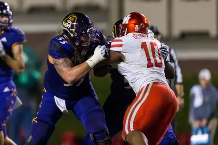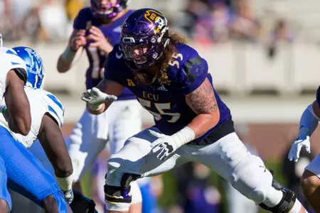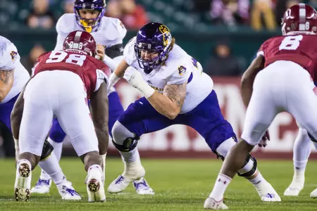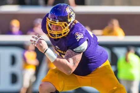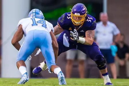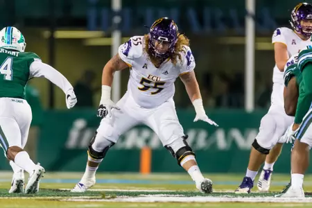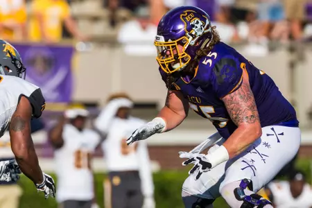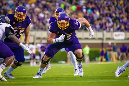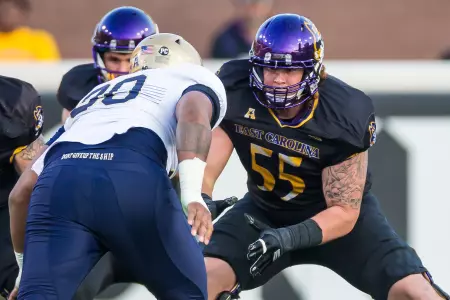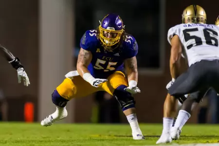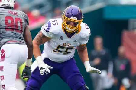 Has enjoyed a noteworthy developmental transition from special teams contributor to full-time starting role to a conference and now national honors candidate in just three-plus seasons ⦠A Third-Team Preseason All-American Athletic Conference selection by Phil Steeleās College Football Preview Magazine ⦠Also offers unmatched leadership capabilities and skills, both on and off the field, and ranks among the programās most popular and community service-minded players ⦠Flexibility and a āteam-firstā attitude has enabled successful contributions at every position on the offensive line during career ⦠Will open preseason workouts penciled in as the Piratesā top right tackle after making move over from the guard and center slots during the 2017 season ⦠Work ethic, attention to fundamentals and technique immediately has been lauded by coaching staff ⦠Displays impressive agility skills and quickness despite 6-foot-6, 302-pound frame ⦠Significantly increased strength numbers for the third-straight off-season ⦠In fact, was ECUās 2018 nominee for the annual āCollege Football Freaks Listā compiled by Bruce Feldman (Fox Sports, The Athletic) ⦠Possesses a 425-pound bench press, a 635 squat, a 352 power clean and 5.1 40-yard dash ⦠Redefined body during the spring and summer, dropping 25 pounds from listed 2017 weight of 327 ⦠Originally reported to the Pirate program as a freshman weighing 250 pounds.