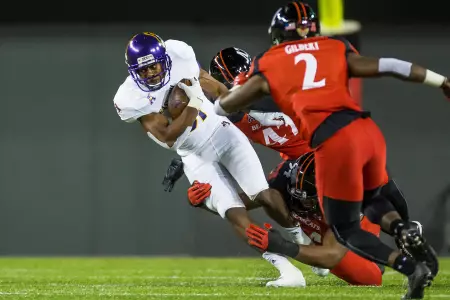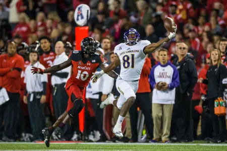 2016: Opened all 12 games as the Piratesā top āZā receiver ⦠Tallied 45 receptions for 818 yards and eight touchdowns ⦠Catch total (45) ranked third on unit, but owned second-highest yardage clip (818) and topped ECU in TDs (eight) and yards-per-catch average (18.2) ⦠Turned in three 100-yard receivingĀ games, including a career-high 179-yard effort at Virginia Tech ⦠Other triple-digit outings came against UCF (7-145) and Cincinnati (7-129) ⦠Seven-catch performances vs. Knights and Bearcats marked a personal-best ⦠In all, was targeted 78 times and produced 25 first-down grabs ⦠Two of three receptions against Hokies went for 70 or more yards (75, 70-yard TD catches in the third quarter) ⦠Other six scores were vs. Western Carolina (31-yarder), Cincinnati (28, 37), Connecticut (31), Navy (6) and Temple (13) ⦠Booked at least one reception in all 12 games and contributed multiple totals on 11 occasions ⦠Had six catches once (Connecticut/71 yards), five grabs twice (NC State/59, Temple/86), three receptions twice (Virginia Tech/179, Navy/21) and two catches four times (Western Carolina/40, South Carolina/44, Tulsa/34, SMU/7) ⦠Hauled in single pass at USF for three yards ⦠In addition to career-long 75-yarder against Hokies, also accounted for a 50-yarder vs. the Knights and five 30-plus gains vs. Bearcats (39), Owls (37), Wolfpack (33), Catamounts (31) and Huskies (31) ⦠Averaged 4.1 receptions and 62.0 receiving yards per game in eightĀ contests vs. AAC opponents (33-496, 5 TD) compared to 3.0 and 80.5 clips (12-322, 3 TD) in four non-league outings ⦠Balanced home/road splits with 25 grabs for 343 yards in six Dowdy-Ficklen Stadium appearances (20-475 in six away games) ⦠Captured Rock Roggeman Heart-of-the-Pirate Award for second-straight season.
