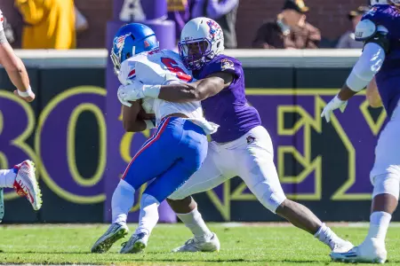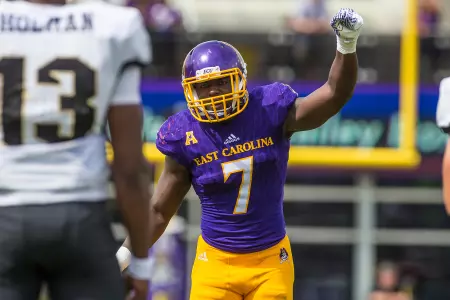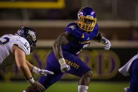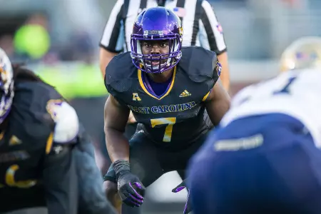 Has ranked among programā top two tacklers in successive seasons (second/2015, first/2016) ⦠Possesses record-breaking strength, a high level of physicality and plenty of athleticism ⦠Made rapid ascend on unitās depth chart after arriving as a walk-on transfer (Shaw University) in 2014 ⦠Made initial impact on special teams squads as a redshirt freshman before following with first full-time starting assignment and promotion to scholarship status in 2015 ⦠Expected to open senior year contending for conference honors candidacy as the Piratesā starting āmikeā inside linebacker ⦠A Preseason All-American Athletic Conference (fourth-team) choice by Athlon Sports ⦠Has played in 33 career contests and made 15 starts ⦠Credited with 163 stops (81 solo), 10.0 tackles for lost yardage, 3.0 sacks, a forced fumble and recovery, and an interception ⦠Owns six double-digit tackle performances and tallied at least one hit in 28 outings (multiple stops on 23 occasions) ⦠Picked up a pair of tackles, including a sack, during first spring scrimmage on April 1 ⦠Added a single tally in second outing (April 7) before ranking among team leaders with six drops during the Purple-Gold Game on April 22 ⦠Progress in strength and conditioning program are rivaled by few ⦠Established an ECU positional (LBs) record with a 374-pound power clean, plus recorded a squat lift of 600 pounds and a bench press of 385 ⦠Other measurable include a 36.5ā vertical jump, a 10ā4ā broad jump and a 4.56 40-time ⦠Owns teamās top power quotient (formula which encompasses all testing data) ⦠Modified body and emphasized speed enhancement during off-season conditioning work 2017, dropping nearly 15 pounds.