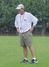 Through the efforts of university officials from both ECU and Elon, the Pirates were able to practice on the Elon campus Thursday afternoon. Driving winds and rains forced ECU to practice indoors, inside a pair of auxiliary gymnasiums, where they worked out for approximately one and one-half hours.