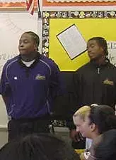 Across town at the Kennedy Learning Center, players split up into teams of three and went inside the classrooms and talked about staying in school and doing your best in school, while answering a variety of questions. In addition to have their pictures taken and signing autographs for their new fans, some Pirates even brushed up on their math skills helping out one class with its daily arithmetic assignment.