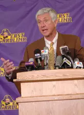 "We know that it affects the budget. We are trying to make sure that it will not affect the performance of any of our teams and obviously the football program as well. It means that we will have to call on everyone to shoulder some of the load. The great thing about this place is that there is a great spirit of cooperation and an understanding we are all in this together. When there is a deficit created by whatever matter, everybody works to solve that deficit. It means everybody has to cut expenses a little bit, the Pirate Club has to raise more money and the university has to help us a little more. All of those are factors in how a place like this operates. Obviously we would do the same for every department within the university. I will say there is great spirit of cooperation here unlike almost any place I can imagine. I really believe that we will answer the financial concerns, we will find a way to move ahead and that whoever our new coach is, that cooperation will extend not just here on campus, but throughout the Pirate Nation."
