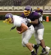 GREENVILLE, N.C. ?? The East Carolina football team was up practicing early again Monday morning in the first installment of two-a-day practices. The Pirates opened practice at 8:15 a.m. on Bagwell Field at Dowdy-Ficklen Stadium for the morning session under mostly cloudy skies and temperatures in the 70s. The clouds rolled out during the late evening session and ECU practiced under sunny skies with temperatures in the mid-80s.