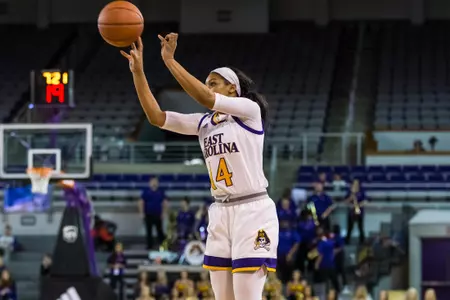 The Pirates took a commanding 29-11 lead in the first quarter and never looked back. ECU shot a season-best 51.4 percent from the field and was 55.6 percent from three-point range. Williams' six treys marked the first time a Pirate tallied five-or-more three-pointers in a game since Antoinette Bannister made five against Greensboro College in 2016.