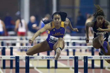 2012-13 Track and Field: Competed in the indoor 60-meter dash, 200-meter dash and 60-meter hurdles ... Opened the season with a time of 7.81 in the 60-meter dash at the Christopher Newport Invitational ... Ran the 200-meter dash in 25.87 at the Virginia Tech Invitational ... Competed in the 60-meter hurdles at six meets ... Recorded a season-best time of 8.59 at the Kent Taylor Invitational to win the 60-meter hurdles finals ... Saw action in the outdoor 200-meter dash, 100-meter hurdles, 4x200-meter relay, 4x400-meter relay, sprint medley relay, shuttle hurdle relay, and long jump ... Posted a career-best time of 24.86 in the 200-meter dash for a fifth place finish at the Charlotte Invitational ... Came in second in the 100-meter hurdles at the Mountains versus Beaches meet with a career-best time of 14.12 ... Ran anchor for the 4x200-meter relay team that placed third at the Penn Relays with a time of 1:35.85 ... Was part of the 4x400-meter relay squad that finished eighth with a time of 4:00.23 at the 49er Classic ... Her sprint medley relay team earned a ninth place finish at the Penn Relays after recording a time of 3:55.42 ... Was part of the shuttle hurdle relay squad that set an ECU school record with a time of 1:00.60 ... Competed on the field in the long jump and posted a career-best mark of 5.57m (18-03.25) for a 14th-place finish at the C-USA Outdoor Championships.