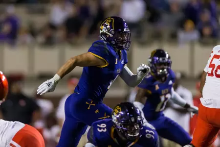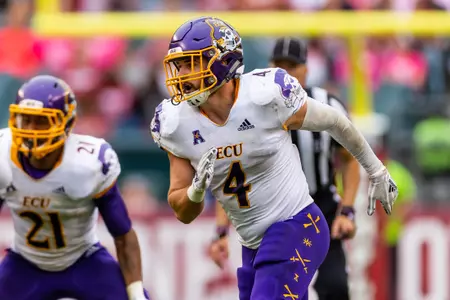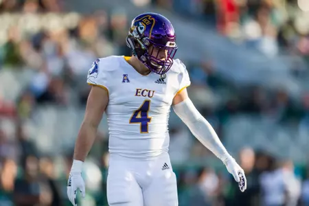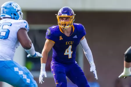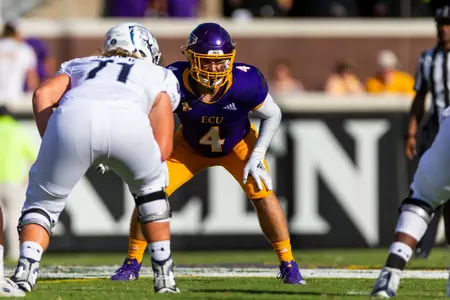 Expected to fully bounce back from an injury and subsequent rehabilitation which sidelined him from contact work during the entire 2018 spring practice period ⦠Will be cleared āfull-goā entering preseason camp according to team medical personnel ⦠Currently listed as a top backup at the āmikeā linebacking position, but coaches expect a competitive battle with Bruce Bivens to remain ongoing throughout the duration of the season ⦠Flexibility also will allow movement to the āwillā slot should a depth-seeking personnel move be warranted ⦠Quickly became a fan and media favorite after signing with the Piratesā program in December, 2016 and participating in spring drills ⦠One of the more active contributors to ECUās community relations program.