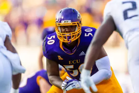 2015: Played in one contest as a redshirt freshman during first active campaign on roster … Experienced only action in road finale at UCF and was credited with first collegiate tackle on a rushing play against the Knights during ECU’s 44-7 triumph.