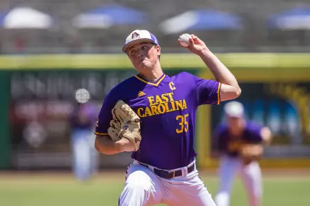Career Notes: Recorded 29 career quality starts ⦠Third-Team All-America by D1Baseball (2016) ⦠Honorable Mention All-America by Perfect Game (2016) ⦠Named to Charlottesville All-Regional Team (2016) ⦠First-Team All-American Athletic Conference (2016) ⦠Golden Spikes Midseason Watch List (2016) ⦠College Baseball National Pitcher-of-the-Year Watch List (2016) ⦠Greg Olson Award Semifinalist (2016) ⦠Three-time Williams Jungle Pitching MVP (2015-17) ⦠Received the Gaylord Perry Amateur Pitching Award as the top non-professional hurler in North Carolina from the Wilson Hot Stove League (2016) ⦠Became 11th pitcher in program history to win the pitching crown leading the team in wins (8), strikeouts (95) and ERA (2.01) ⦠Worked 116.2 innings as a junior, which ranks second on the single-season charts ⦠His .889 win percentage in 2016 (8-1) is tied for eighth on the Pirates single-season charts ⦠Winning pitcher in ECUās first-ever AAC game (vs. Memphis/March 28, 2015) ⦠Ranked among The American leaders (Top 5) in pickoffs the last three season (2015-17) including leading the league in 2016 with nine (17 for career) ⦠Winning pitcher for ECUās first-ever super regional win at No. 5 National Seed Texas Tech in Lubbock Super Regional (June 10, 2016) ⦠Three-time AAC Honor Roll selection (twice in 2015, once in 2016) ⦠Struck out a career-best 13 batters at Tulane (April 11, 2016) ⦠Fanned seven or more batters in a game 11 times (10 or more twice) ⦠Had career starts that went seven-place innings ⦠Five-time ECU Director of Athletics Honor Roll member ⦠Two-time American Athletic Conference All-Academic Team selection (2015-16).