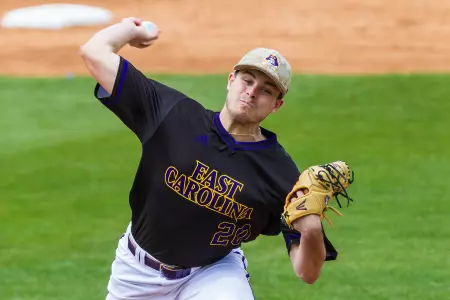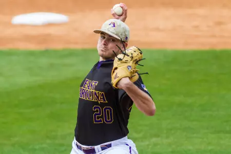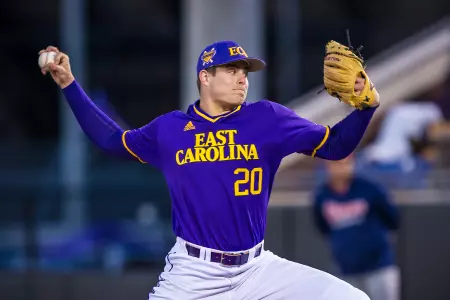 2020: Made four starts posting a 2-1 record before the season was cut short due to the COVID-19 pandemic … Member of a squad that posted a 13-4 record and finished ranked nationally in a pair of polls … Stood second on the team with a 1.96 ERA among starters … Allowed four runs (all earned) on nine hits in 18.1 innings … Struck out 19 while walking 10 … Allowed just one extra base hit in his four outings (double) … Held opposing hitters to a .145 composite batting average (first among starters) … Did not allow a hit with two-outs on the year (opponents were 0-for-16) … Induced seven fly out and 27 grounds outs … ECU posted a 3-1 record in his four starts and outscored opponents 30 to 12 … Made season debut against William & Mary (Feb. 15) tossing five scoreless innings where he allowed a hit, struck out six and walked a pair in an 11-3 victory … Followed that with outing giving up a run (earned) on three hits in 4.2 innings against Georgia Southern (Feb. 23) … Suffered lone loss of the season against No. 13 Ole Miss in the Keith LeClair Classic where he allowed two runs (both earned) on two hits in 3.2 frames, while striking out five and walking four … Final start of the season came at Charlotte (March 7) where he fanned a season-high seven batters with two walks … Surrendered one run (earned) on three hits in the Pirates’ 15-5 victory … Worked into the fifth inning in three of four starts … Allowed one or less runs in three outings … Fanned multiple batters in a contest three times (five or more on three occasions) … Earned wins against William & Mary and Charlotte … Eight of nine hits allowed were singles (lone extra base hit was a double against Ole Miss).