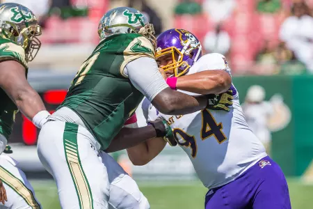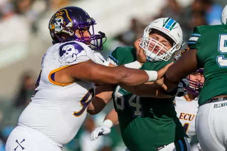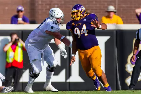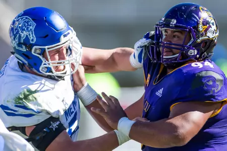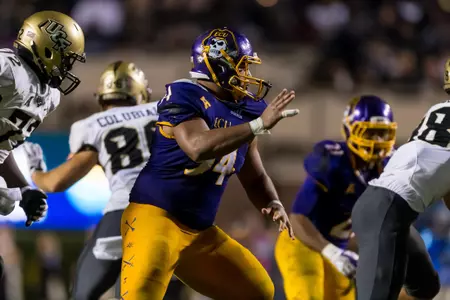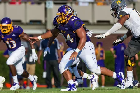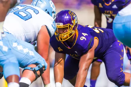 Poised to continue impressive career climb, moving from a full-time starting position as a junior to a conference and national honors candidate during senior campaign ⦠Turned in a productive first three seasons, beginning as a true freshman who experienced significant action 2016 before opening six contests during sophomore season a year later ⦠In all, has played in 29 career games with 18 starts and netted 69 overall stops (28 solo), 12.0 TFLs and 5.0 sacks ⦠Closed out spring work under a new coaching staff with a firm grip on a starting assignment at one of the Piratesā two tackle positions ⦠Ranked among tackle leaders with six (plus 2 TFLs) during the first scrimmage on March 30, but was not credited with any statistics during the remaining two contests ⦠A Preseason All-American Athletic Conference (third-team) selection by Athlons ... Officially recognized as a nominee for selection to the 2019 Allstate AFCA Good Works Team on July 16.