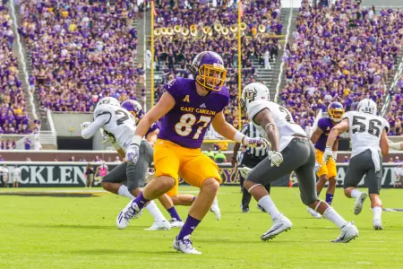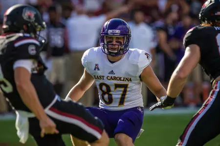 An athletic, agile pass-catcher and blocker who should content for playing time, either on the offensive unit as a reserve tight end or, more likely, as an impact special teams performer during sophomore year … Originally earned first roster position as a walk-on in the fall of 2014 … Possesses a durable work ethic and displays an attention to detail in regards to blocking schemes and routes … Despite solid spring practice showing during workouts, did not record a reception in either scrimmage (April 9, April 16) … Lauded for efforts in Pirates’ strength and conditioning program, earning an “excellent” rating per coach Jeff Connors’ power quotient … Lifts of note include a 345-pound bench press and a 294-pound power clean, while agility testing produced a 31” vertical leap, a 9’6” broad jump, a 4.13 pro shuttle, a 6.80 three-cone drill, a 11.71 long shuttle and a flex rating of 14 … Efforts in the broad jump, three-cone drill and long shuttle stood among top 10 percent of position mates, as did the flex particulars.