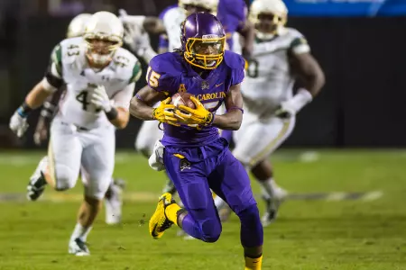 2014: Experienced action in seven games (N.C. Central, North Carolina, SMU, USF, Connecticut, Cincinnati and Florida) … Did not play against South Carolina, Virginia Tech, Temple, Tulane, Tulsa and UCF … Hauled down first collegiate reception in the second quarter against No. 25 North Carolina at Dowdy-Ficklen Stadium that resulted in a 19-yard touchdown ... One of 10 receivers with a reception and one of eight with a catch of 10 or more yards against the Tar Heels … Did not record statistics in other six contests.