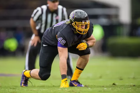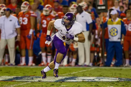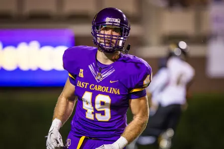 Caught the attention of new coaching staff during spring drills to continue ascend on offensive two-deep heading into senior year … Initially joined ECU program as a walk-on on the spring of 2015 after playing baseball at the junior college level … Offers exceptional strength for blocking duties and a sure-handed approach as a receiver … Expected to open preseason camp batteling Beau Huffman for top reserve duty at tight end … Will likely land multiple roles on various special squads units … Despite eye-catching performance on practice fields during weekday work, did not record a reception in either spring scrimmage … Development in strength and conditioning program is rivaled by few … Earned an “Elite Pirate” rating after setting positional (tight end) records in the bench press (430 pounds) and squat (560) … Overall body of work ranking was deemed as “excellent” (per quotient formula), which also included a power clean of 340 pounds, a push jerk of 296, a 40 time of 4.68 and a pro shuttle clip of 4.39.