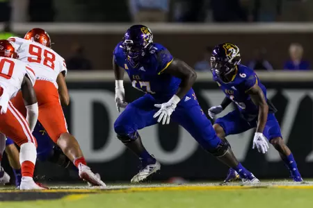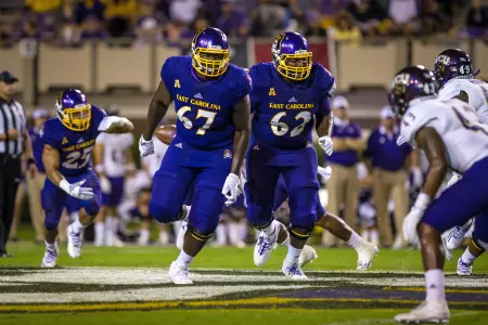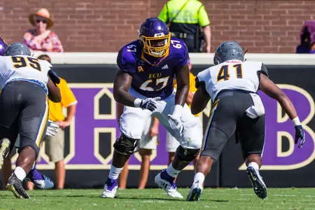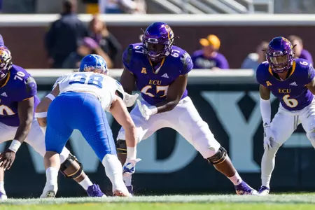 2018: Started all 12 games at left tackle … Selected as game captain on eight occasions … Played pivotal role up front for an offensive unit that eclipsed 400 yards of total offense on eight occasions and 500-plus yards three times – 510 vs. North Carolina, 556 vs. Memphis and 657 vs. Connecticut … Performance vs. Huskies at Dowdy-Ficklen Stadium also included season-bests in points (55), rushing yards (415) and first downs (34) … Also helped ECU rack up 496 yards (406 passing) against American Athletic Conference champion UCF, 492 vs. Old Dominion and 450 at Tulane … Credited with paving the way for two individual 100-yard rushing performances and five 300-yard passing efforts … Part of unit that stood 20th nationally in passing yards per game (284.8).