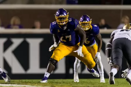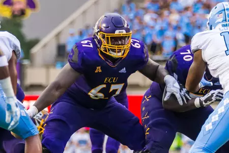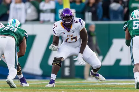 A versatile, agile and talented four-year letterman and three-year starter who will be regarded as one of the Pirates’ top offensive lineman in program history … Experienced action in five seasons (2016-2020) after being a granted a medical hardship waiver (officially approved by the American Athletic Conference on May 8, 2019) that determined that a year of eligibility was not used in '16 after playing in just one game prior to an injury … Completed career with a streak of 26-straight starts (30 overall starts in 33 games played) prior to suffering a season-ending injury in 2020 … Played both guard and tackle early during career, but became entrenched at the latter high-profile pass-blocking role because of his rapid development and maturity level … Was mentored by three different position coaches during his collegiate career at ECU (Geep Wade/2016-17, Don Mahoney/2018, Steve Shankweiler/2019-20).