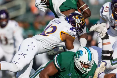 2017: Experienced action in all 12 contests and stood third on the unit with 68 stops (31 solo) … Started the last 10 games of the season after coming off the bench vs. James Madison and West Virginia … Opened the Virginia Tech, Connecticut, USF, Temple, UCF, BYU, Houston and Tulane tilts at nickelback, while starting the Cincinnati and Memphis contests at strong safety … Collected multiple tackles in every game and reached double-digits once (matched a career-best with 10 vs. BYU) … Other contests of note came vs. USF (9 stops), UCF (8), Tulane (8) and Connecticut (6) … Also credited with 5.5 TFLs (-27 yards) against West Virginia (1.0), Connecticut (1.5), UCF (2.0) and Tulane (1.0) … Logged only sack (-4 yards) vs. the eventual AAC champion Knights in Orlando … Forced one fumble (James Madison), broke up three passes (WVU, UConn, UH) and logged one quarterback hurry (JMU) … Splits include 40 stops against the run and 28 vs. the pass … Ranked second on unit with 46 tackles (5.8 tpg) in eight AAC games, third in seven home games (41/5.9), third in five road games (27/5.4), third in eight day games (40/5.0), second in four night games (28/7.0) and second in three October games (23/7.7) … Named the defensive recipient of the Rock Roggeman “ Heart-of-the-Pirate” Award for attitude and spirit.