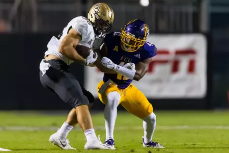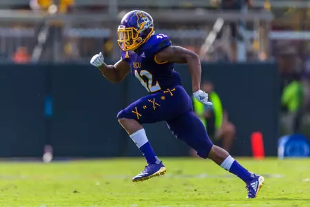 Has successfully navigated a quick climb up the defensive depth chart during last two-plus seasons … Will open senior campaign as the Pirates’ top returning tackler … Expected to battle Tim Irvin for a starting assignment at the nickelback position … Also could experience a visible role on various special teams depending on secondary workload and responsibilities … Made an impressive acclimation to the college game with quick-developing fundamental execution and athleticism ... Has played in 22 career contests, already booked 108 tackles (53 solo), 5.5 TFLs and four pass breakups … Officially joined ECU program as a preferred walk-on in the spring of 2015 … Led all tacklers with six, including one for lost yardage, during the first spring scrimmage (March 17) before following with four stops and a bone-jarring forced fumble in the Purple-Gold Game on March 24.