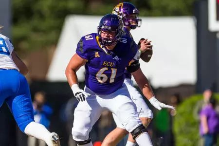 2018: Took advantage of continued development and an early-season injury to Branden Pena to vault into a quasi-permanent full-time starting position as a junior … Played in the final six games (and eight of the last nine contests) … Experienced action vs. Old Dominion, Temple, UCF, Memphis, Tulane, Connecticut, Cincinnati and NC State … Made five (5) starts at the right guard slot against Knights, Tigers, Huskies, Bearcats and Wolfpack … Did not play in first three tilts vs. North Carolina A&T, North Carolina and USF, as well as Houston … Provided a notable impact up front in three of the Pirates’ top four offensive outputs of the season (496 total yards/UCF, 556/Memphis, 657/Connecticut) … Performance vs. Huskies at Dowdy-Ficklen Stadium also included season-bests in points (55 points), rushing yards (415) and first downs (34) … Helped ECU rack up 450 yards of total offense (360 passing) in road matchup at New Orleans vs. the Green Wave … Part of unit that stood 20th nationally in passing yards per game (284.8).