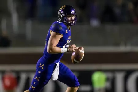 2019: Opened all 12 contests during sophomore campaign … Passed for 3,387 yards (264-of-442) and 21 touchdowns with only 10 interceptions … Completion percentage was 59.7 … On the national (FBS) level, ranked ninth in total offense (3,746 yards), 12th in passing yards per game (282.2), 17th in completions per game (22.0) and 21st in passing yards … Rushed for 359 yards and six TDs on 108 carries, an average of 3.3 per attempt … Established three single-game school records during the course of the season – passing yards (535 vs. Cincinnati), passing TDs (six vs. SMU) and most total yards (556 vs. Cincinnati) … Aerial effort vs. Bearcats also rated as the third-highest single-game passing performance on the FBS level in 2019 (606, 570 by Washington State’s Anthony Gordon) … Trailed only Shane Carden and Dominique Davis on ECU’s single-season lists for passing yards (4th), most completions (6th) and most total yards (4th) … Surpassed 200 passing yards on nine occasions (300/5, 400/2, 500/1) … Accounted for at least one TD throw in nine contests, two or more five times, three or more thrice and four or more twice … Earned American Athletic Conference Honor Roll inclusion following efforts vs. SMU (32-of-42, 498 yards, 6 TDs, 8-25 rushing) and Connecticut (34-of-50, 374 yards, 1 TD, 6-22 & 1 TD rushing) … In addition to record-breaking passing numbers (32-of-52, 535 yards), accounted for five touchdowns against Cincinnati (4 air, 1 ground) … Top rushing outing was a 78-yard, two-TD performance on 10 carries vs. Gardner-Webb in home opener … Also added 60 yards on 14 attempts – which included a season-long jaunt of 36 – against William Mary before recording best AAC ground numbers at UCF (15-47, 1 TD) … Tallied other rushing scores vs. Navy, Cincinnati and Connecticut … Suffered only one lost fumble in 108 attempts (at NC State) … Enjoyed favorable conference & non-conference splits, averaging 326.6 passing yards per game in eight league tilts (196-of-319 for 2,612 yards and 17 TDs) compared to a 193.8 yards-per-game clip in four non-AAC matchups (68-of-123, 775 yards, 4 TDs) … Home/road numbers were nearly identical in six contests – 134-of-230 (1,694 yards/282.3) and 11 touchdowns at Dowdy-Ficklen Stadium compared to 130-of-212 (1,693 yards/282.2) and 10 TDs away from Greenville … Turned in strong finish, averaging 374.2 yards per game with 15 scoring tosses in final six outings (190.3 ypg, six TDs in first six) … Closed campaign as arguably one of the hottest quarterbacks nationally, completing 125-of-192 throws (65.1 percent) for 1,715 yards (428.8 ypg) with 14 touchdowns during the month of November, which included the final four contests vs. Cincinnati, SMU, Connecticut and Tulsa … Accounted for 56 pass completions (12 TDs) and seven rushes (1 TD) that covered 20-plus yards, including five of 50+ – 75 (C.J. Johnson/Cincinnati), 72 (Blake Proehl/Old Dominion), 68 (Jsi Hatfield/(SMU, 57 (Tyler Snead/SMU) and 53 (Deondre Farrier/Old Dominion) … A total of 124 (of 264 completions) were for 10 or more yards … Pass success rate on third down was 51 percent (68-of-133) that resulted in 45 first downs and nine TDs … Was 109-of-165 (66%) on first down, which moved the chains on 54 occasions … Was a perfect 3-of-3 on fourth down pass attempts (two conversions) … Didn’t reach 200-yard passing mark until Game 4 (William & Mary) after opening the season with 168 (NC State), 195 (Gardner-Webb) and a season-low 138-yard effort (Navy) … Finished the year with a run of nine-straight 200-plus outings … Prior to aforementioned notables vs. Cincinnati, SMU and Connecticut, threw for 210 vs. William & Mary, 202 vs. Old Dominion, 229 vs. Temple, 313 vs. UCF and 217 vs. USF before closing with 308 (and three TDs) vs. Tulsa … Surpassed the 40 attempt mark four times (52/Cincinnati, 50/UConn, 48/Tulsa, 42/SMU) … Completed 30 or more throws on three occasions (season-high 34 against Huskies, 32 each against Bearcats and Mustangs).