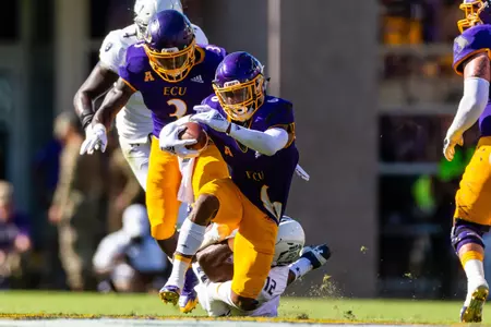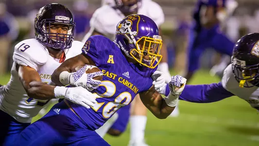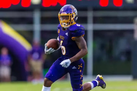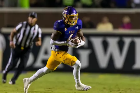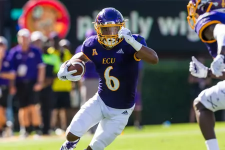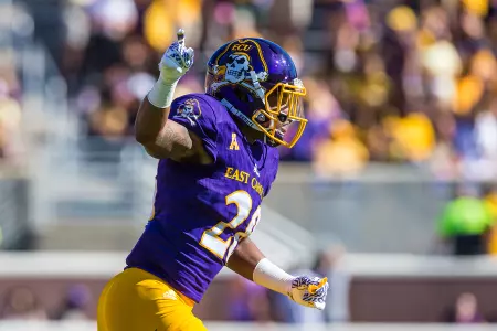 2018: Played in all 12 games (for the third consecutive season) as a junior … Turned in the second-highest rushing total among ECU running backs after picking up 236 yards on 70 attempts (3.4 ypr) … Caught 12 passes for 53 yards (4.4 ypc) … Reached the 50-yard rushing watermark in contests vs. North Carolina (season-high 15 carries for 50 yards) and Connecticut (10 attempts for a season-best 55 yards) … Also recorded a season-long ramble against the Huskies (23-yarder) … Ran for 40 yards on seven carries in the American Athletic Conference opener at USF, while also reaching 20 or more yards against Old Dominion (5-20), Memphis (6-27) and Cincinnati (9-23) … Opened the campaign with a two-carry, 15-yard effort vs. North Carolina A&T before adding 13 yards on four totes at Tulane … Had three or less ground yards in outings vs. Temple (4-3), Houston (2-0) and NC State (6-<-10>) … Hauled in a season-best three catches in successive weeks vs. UCF (season-high 19 yards) and Memphis (8) … Had a pair of grabs against the Cougars (11) while logging single receptions vs. the Tar Heels (7), Monarchs (2), Owls (0) and Wolfpack (6) … Targeted as a pass catcher on 23 occasions … Booked all three kickoff returns against Memphis for a career-best 46 yards (long of 29) … Charged with only one fumble (NC State) … Rushed for 161 yards on 42 carries (3.8 ypr) during eight-game AAC slate (28-75 in four non-league contests) … Nearly doubled his yards-per-carry average (4.2) at Dowdy-Ficklen Stadium compared to a 2.3 clip in five road matchups … Followed a 29-carry, 125-yard (4.3 ypr) month of September with just three net yards on six attempts (0.5) in October before bouncing back with 118 yards on 29 carries (4.1) in November … Also credited with one tackle (on a punt return) against the Knights.