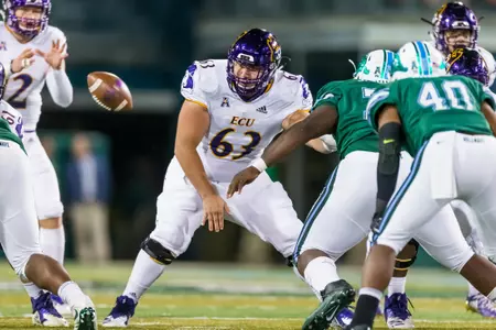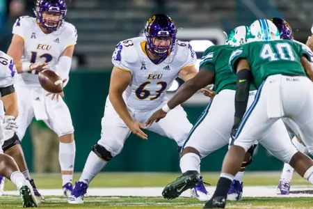 2018: Opened sophomore campaign on the two-deep as a back-up right guard but was pressed into action at center because of injuries to John Spellacy and Peyton Winstead … Did not play in the first seven games, but experienced a notable number of snaps in ECU’s last five (5) contests – vs. Memphis, Tulane, Connecticut, Cincinnati and NC State … Contributed in the Pirates’ two most productive offensive showings of the season, following a 556-yard effort vs. the Tigers with a 657-yard performance against the Huskies that also included high-water marks in scoring (55 points), rushing yards (415) and first downs (34) at Dowdy-Ficklen Stadium … Additionally, helped ECU rack up 450 yards of total offense (360 passing) vs. the Green Wave on the road.