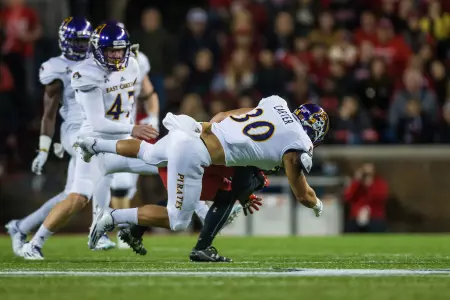 2014: Played 12 games as a member of special teams units (DNP vs. North Carolina) ... Made collegiate debut against N.C. Central in the Pirates’ season opener and was immediately thrown into the fire as a true freshman ... Booked nine tackles (three solo), all on special teams (eight on kickoff returns, one on a punt return) … Nine tackle total ranked second among all special teams players … Recorded at least one tackle in four contests … Booked multiple-stops on three occasions … Credited with a career-best three hits twice (at Cincinnati, at Tulsa) ... Other multi-tackle game was against Connecticut at Dowdy-Ficklen Stadium ... Finished year on a high note, racking up seven stops in the last five games (only two in first seven outings) … Officially inked with ECU during the traditional signing day (period) in February.