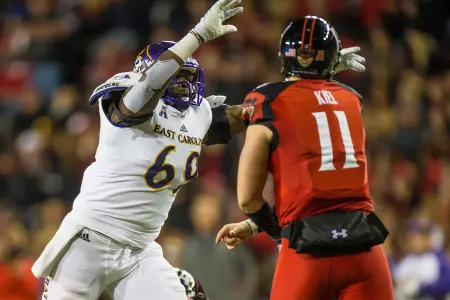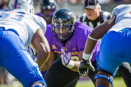 2015: Played in five contests as a true freshman after inking with ECU during traditional February signing period … Experienced action in contests against SMU, Tulsa, Temple, Connecticut and USF … Previous coaching staff had hopes for a redshirt campaign, but personnel shortages on the line of scrimmage prompted call to active status … Tallied five tackles (one solo), 1.5 TFLs and one sack … Booked a season-high three stops in home matchup vs. Golden Hurricane, which included only quarterback drop (-6 yards) of campaign … Other tackles came against Temple and USF (only solo hit) … Credited with half a TFL against Owls … Three of five stops were on rushing plays.