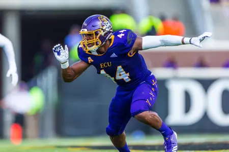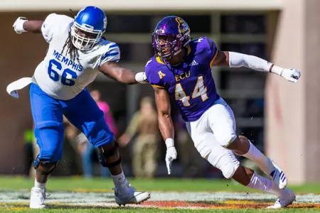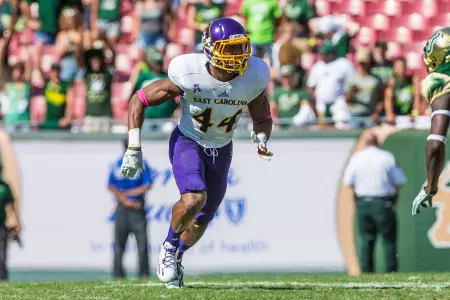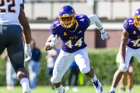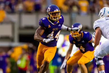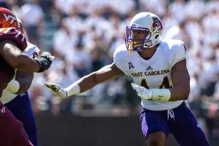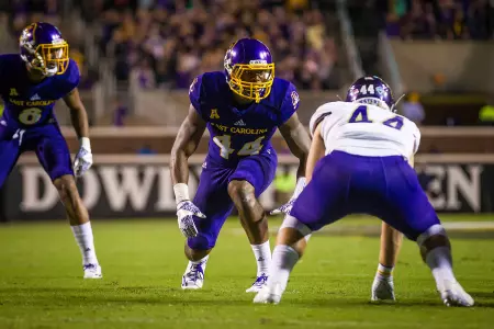 2017: Opened four of nine contests played as a sophomore … Made starts against West Virginia, BYU, Houston and Memphis … Did not play vs. USF, Temple and UCF because of injury … Collected 13 tackles (nine solo) … Registered 3.0 TFLs (BYU, Cincinnati and Memphis), which resulted in -13 yards … Posted only sack (-8) against BYU at Dowdy-Ficklen Stadium … Also credited with a forced fumble vs. Cougars and a quarterback pressure against the Bearcats … Produced at least one tackle in seven outings and had multiple stops four times … Tallied a season-best four hits during AAC opener at Connecticut, three coming as solo drops … Had two each in tilts vs. Virginia Tech, BYU and Cincinnati.