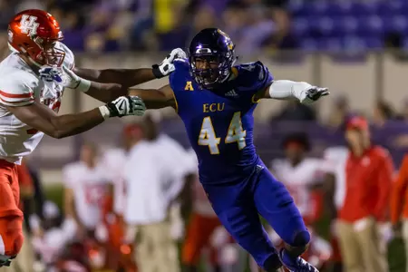High School: A three-year starter and lettermen for coaches Tim Carter and Andy Tew at South Central High School … Credited with over 230 tackles, 40.0 TFLs, 25.0 sacks and eight forced fumbles during prep career … Selected as the 2015 Greenville Daily Reflector Defensive Player-of-the-Year after netting 101 total stops, 14.0 TFL and a county-high 12.0 sacks as a senior … Also a member of the Daily Reflector’s First-Team All-County squad … Earned additional accolades with inclusion on USA Today’s North Carolina All-State squad (second team) … Opened senior campaign as a linebacker for Falcons, but moved to defensive end midway through the season … Cited by MaxPreps.com as the Falcons’ defensive player-of-the-game on three occasions and as the overall player-of-the-game once … Helped lead South Central to a 7-5 record and North Carolina High School Athletic Association (NCHSAA) playoff appearance as a junior … Racked up 103 tackles, 24.0 TFL and 12.0 sacks in 2014 … Turned in notable effort against Southern Wayne HS during junior season with 15 stops (10 solo), 4.0 TFL, a sack and a safety during the Falcons’ 36-6 victory … Started prep career on the junior varsity as a freshman but was quickly promoted to starting role on varsity early during sophomore year … Labeled as a two-star prospect according to Scout.com … Earned additional letters in basketball … Officially committed to ECU on September 3, 2015 … Also received interest from (and recruited by) Clemson, North Carolina, North Carolina State and Purdue.