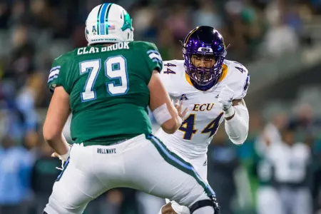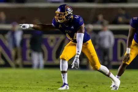 2018: Played in all 12 games and made 11 starts (came off the bench in home matchup against Memphis) … Credited with 34 tackles (16 solo), 6.5 resulting in lost yardage (sixth on the unit) … Led Pirates in quarterback pressures (11) and topped all lineman in batted passes (5) … Stood second on team and among Top 20 in the American Athletic Conference with 4.0 sacks (-39 yards), posting QB drops against Old Dominion (2.0), USF (1.0) and Houston (1.0) … Registered at least one stop in 11 games and booked multiple tackles on nine occasions … Established a career-best with six successful hits against the Monarchs, while also contributing three hurries and three pass breakups … Produced a pair of five-tackle performances (Houston, Cincinnati), logged four stops vs. North Carolina and was credited with three tackles twice (Tulane, NC State) … Added at least two pressures against North Carolina A&T and Connecticut … Knocked down other two pass attempts against Bulls at Raymond James Stadium … In addition to netting two vs. ODU, recorded other TFLs vs. Houston (2.0), USF (1.0), North Carolina (0.5), Cincinnati (0.5) and NC State (0.5) … Turned in a season-high four solo tackles vs. Cougars at Dowdy-Ficklen Stadium … Majority of stops came on rushing plays (27 of 34) … Turned in 20 tackles during eight-game AAC schedule (2.5 tpg) … Also had a 20/14 split in the first/second halves of the campaign … A key contributor to a unit which ranked third nationally in TFLs (8.8 tpg), 22nd in sacks (2.8 spg) and 35th in fewest first downs allowed (243) … Selected to the 2018 Preseason All-American Athletic Conference squad (third-team) by Phil Steele’s College Football Preview Magazine.