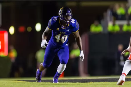 Earned a roster position as an invited walk-on transfer prior to spring drills in 2017 … Initially opened ECU career as a fullback before moving to defense on a full-time basis during the offseason … Quickness, tenacity and unselfishness enabled development into a special teams stalwart as a junior … Expected to serve similar role as a senior with added situational reps on defensive unit ... Was listed as a linebacker when 2018 preseason camp started, but was quickly moved to the stand-up defensive end position during the opening week of drills to take advantage of athleticism ... Was among unit’s top tacklers during the first spring scrimmage on March 17 with five, including two for lost yardage (-3) … Chipped in with four more stops (1 TFL) in the Purple-Gold Game on March 24.
