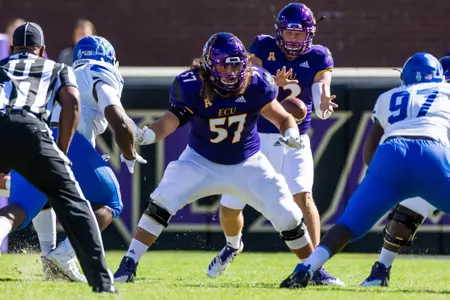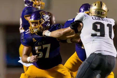 A tough and resilient front line performer who hopes to fully bounce back from an injury that sidelined him for the entire 2019 calendar year ⦠Should be in a position to regain prominent two-deep status and a possible return to a conference honors candidacy trajectory if full comeback is realized ⦠Flexibility and athleticism allowed plenty of action as a swing (guard/center) blocker on the line early during his first spring and preseason camp before earning a more defined role as the programās top offensive snapper during true freshman year ⦠Is one of the more personable and outgoing members of the program off the field, often taking an active role in community relations activities and visibly supporting other ECU sports.
