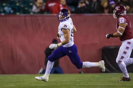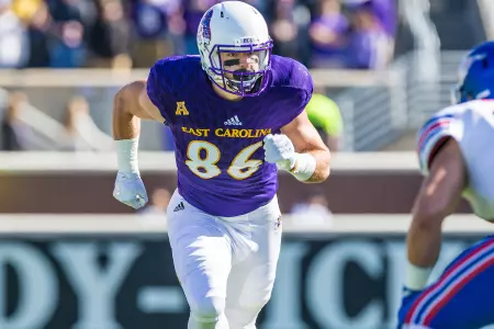 2015: Experienced action in all 12 contests as a reserve tight end and on various special teams squads … Had five catches for 40 yards (8.0 ypr) during sophomore campaign … Recorded multiple receptions on two occasions … Hauled in a personal-best two passes each in games against Navy (14 yards) and Tulsa (season-high 24 yards) … Other grab came vs. Temple for two yards … Season-long catch was a 19-yarder against Golden Hurricane at Dowdy-Ficklen Stadium … Receptions vs. Tulsa and Temple were in successive outings – a career first … Helped Pirates surpass the 500-yard total offense mark three times (555/SMU, 518/BYU and 622/UCF) … Assisted in three individual 100-yard ground efforts, two by Chris Hairston (154/Towson, 123/UCF) and one by James Summers (169/Virginia Tech) … Did not record any personal statistics against Towson, Florida, Virginia Tech, SMU, BYU, Connecticut, USF, UCF and Cincinnati.