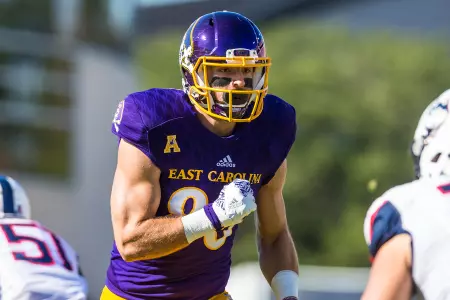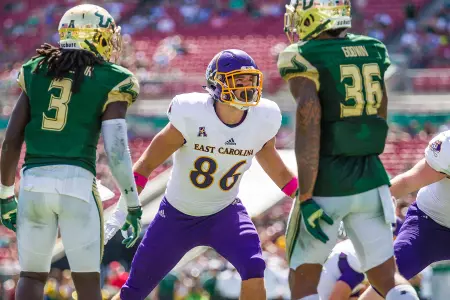 2014: Played in 12 of 13 games, primarily on special teams and in two tight end packages ... Made collegiate debut against N.C. Central in the season opener ... Had two receptions for 27 yards as a rookie – an average of 13.5 yards per grab … Caught first collegiate pass in inaugural American Athletic Conference matchup against SMU (25 yards) in the first quarter at Dowdy-Ficklen Stadium ... Other catch was a two-yarder against Florida in the Birmingham Bowl at Legion Field … Experienced action on offense (tight end) in 10 games – N.C. Central, North Carolina, SMU, Connecticut, Temple, Cincinnati, Tulane, Tulsa, UCF and Florida … Did not play against USF in Tampa … On the blocking end, was credited with helping provide running lanes for four 100-yard rushing games (three by Breon Allen, one by Chris Hairston).