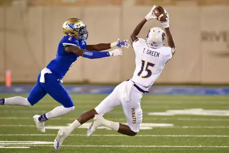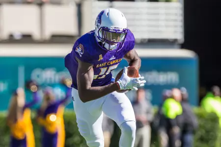 2017: Played in nine contests, all in a reserve role ⦠Did not face West Virginia, Connecticut and USF ⦠Statistically, was not involved in the Piratesā passing attack (0 receptions) ⦠However, did record one rush for 16 yards in home finale against Cincinnati at Dowdy-Ficklen Stadium.
