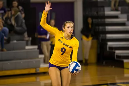 2015: Started all 31 matches while playing in 118 of 119 sets ⦠One of six Pirates to compete in all of the teamās contests ⦠Paced the squad in kills (374), kills per set (3.17) and aces (26) while ranking second in digs (302) and digs per set (2.56) ⦠Fell just 10 kills short of entering the program single-season top 10 list ⦠Placed eighth among American Athletic Conference players in kills per set and points per set (3.56) ⦠Tallied a team-best 14 double-doubles with 11 occurring in AAC play ⦠Notched double-digit kills in 21 matches, including a career-high 24 in a five-set win over UConn (Nov. 25) ⦠Collected a season-best 18 digs in matches at Temple (Oct. 18) and against USF (Oct. 25) ⦠Recorded a career-high four blocks at Tulane (Nov. 22) and Memphis (Sept. 27) ⦠Ended the campaign 287 kills shy of 10th place on the ECU career top 10 chart ... Named to the AAC Weekly Honor Roll Oct. 12 after leading the Pirates to a pair of wins over Tulane and then first place Houston by averaging 3.88 kills and 2.88 digs per set.