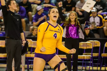 2014: Played in all 31 matches and 114 sets for East Carolina during her sophomore year ⦠Led the team with 312 kills for an average of 2.74 kills per set ⦠Ranked second on the squad with 305 digs to average 2.68 digs per set ⦠Also posted 41 assists (0.36 per set), 29 service aces (0.25 per set) and 43 total blocks (0.38 per set) ⦠Only Pirate to reach the 300 kill plateau in 2014 ⦠Led East Carolina in kills on 14 occasions ⦠Tallied 13 double-doubles ⦠Notched double digit kills nine times ⦠Recorded a career-high 26 kills versus UIC (Sept. 19) at the Penn State Invitational ⦠Registered a career-best 18 digs against conference foe Houston (Nov. 7) ⦠Posted a career-high five total blocks in the league match versus Cincinnati (Oct. 24) ⦠Recorded three aces, a career-best, on four occasions.