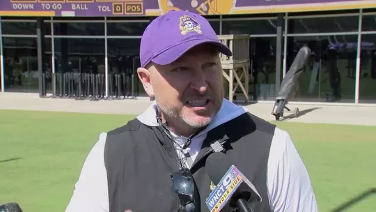 ECU Football Coach Blake Harrell Post-Practice (April 10, 2026)